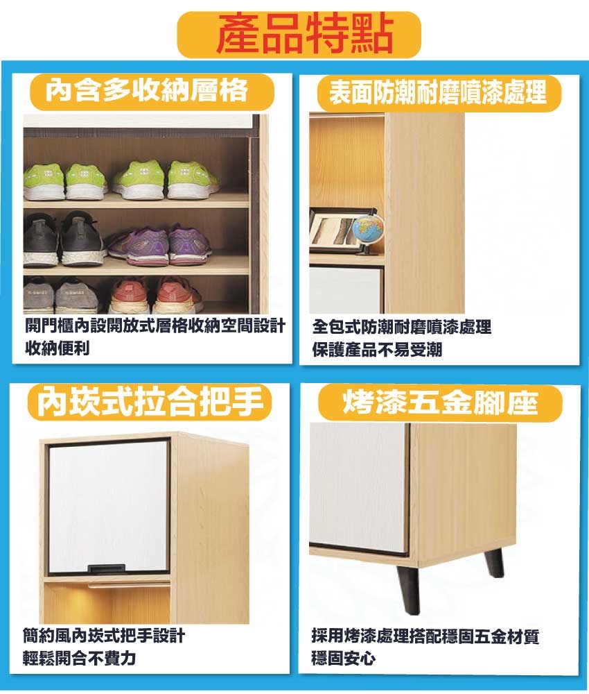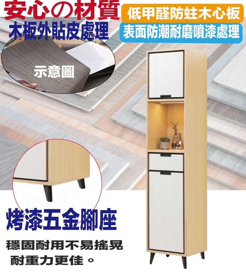 材質:防蛀木心板+防潮MDF板材+五金滑軌結構+防夾手緩衝門片五金+烤漆五金腳座