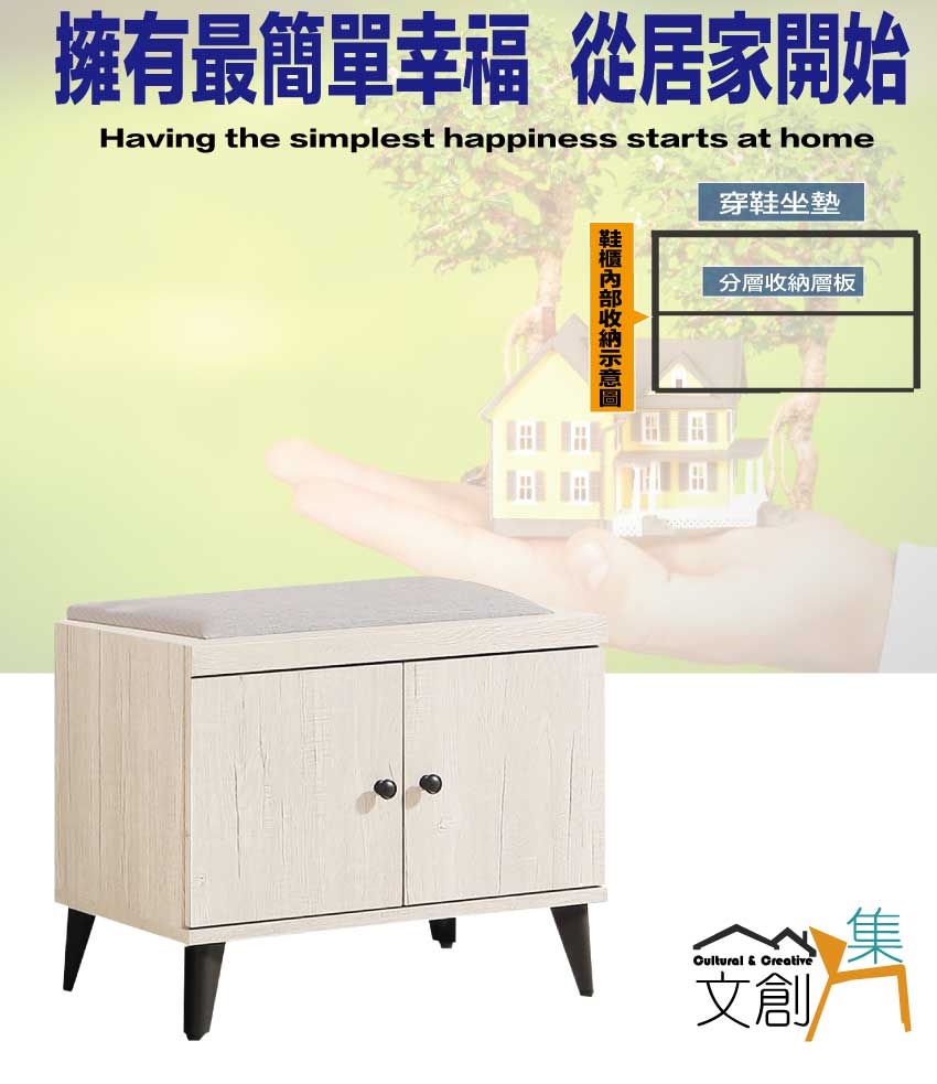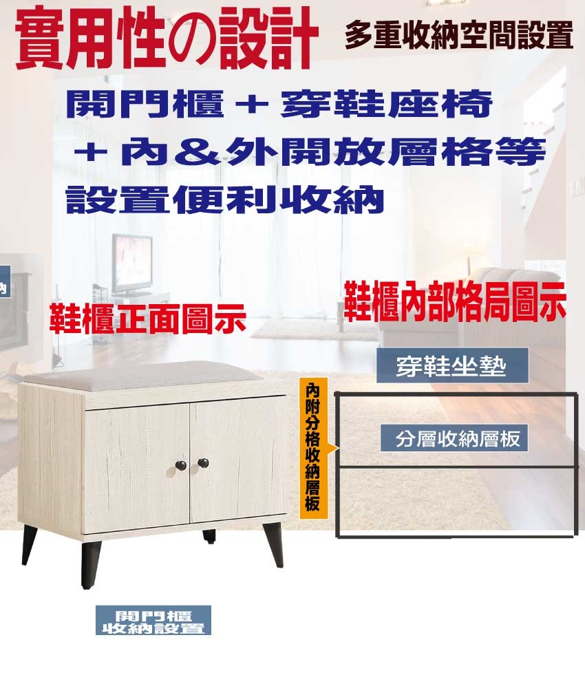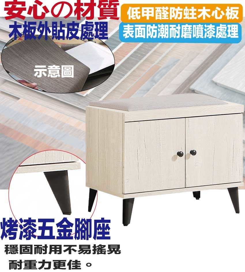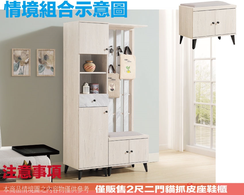 - ◆產品名稱:【綠家居】高利雙色2尺二門貓抓皮座鞋櫃