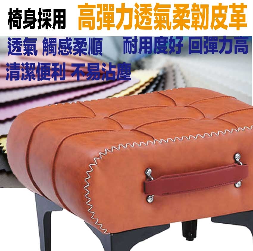 材質:透氣柔韌皮革+高回彈力泡棉+烤漆金屬腳座 -
