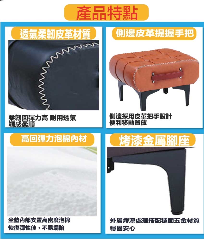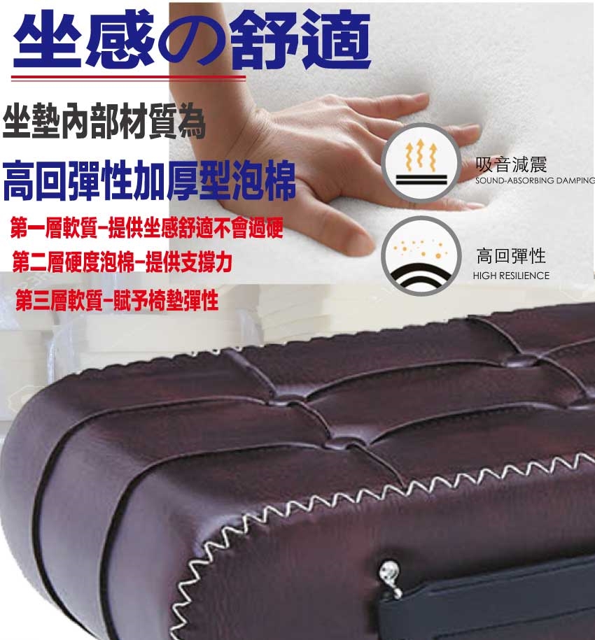 透氣柔韌皮革+高回彈力泡棉+烤漆金屬腳座等安心材質製造