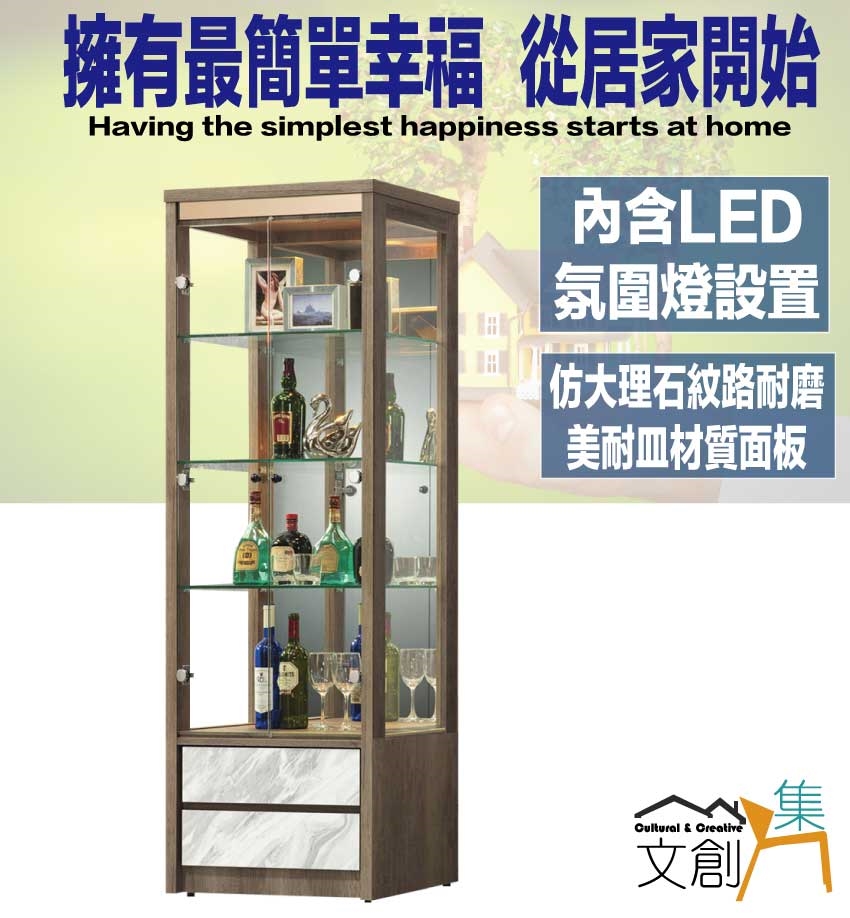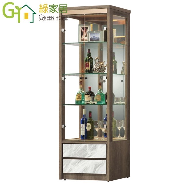 【綠家居】卡登2.2尺二門二抽高展示櫃(內置LED氛圍燈)