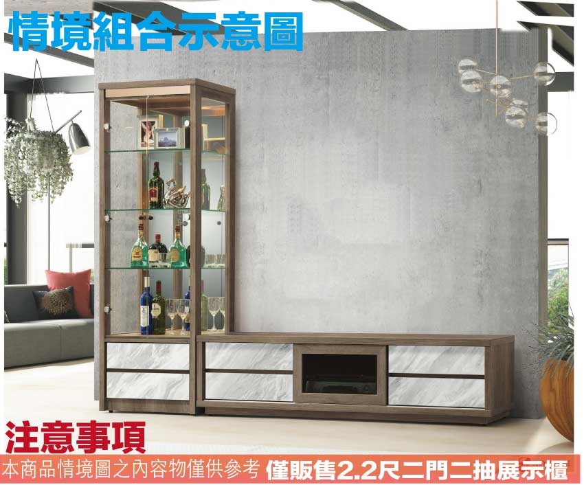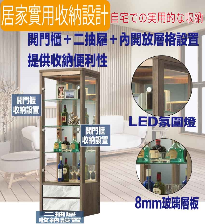 - ◆產品名稱:【綠家居】卡登2.2尺二門二抽高展示櫃(內置LED氛圍燈)