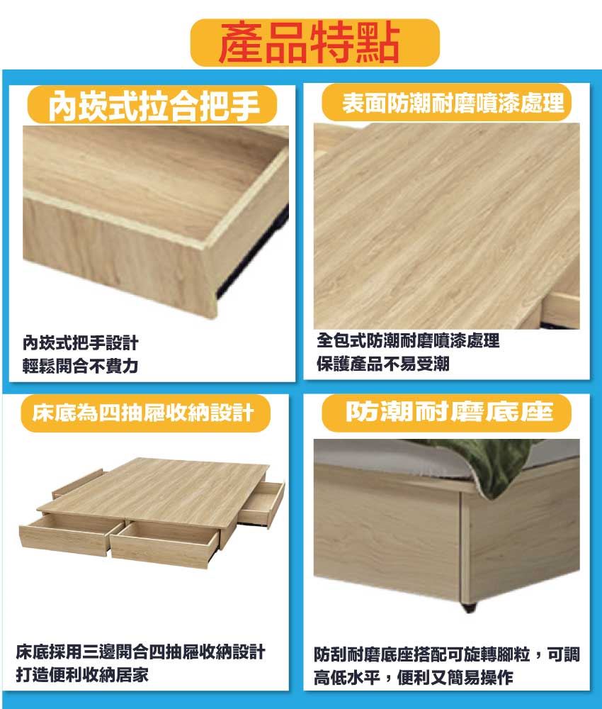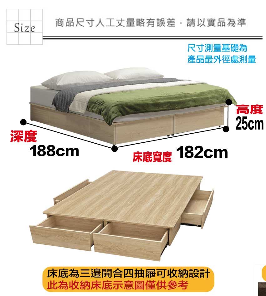 ◆產品名稱:【綠家居】愛亞6尺雙人加大四抽屜收納床底(不含床墊)