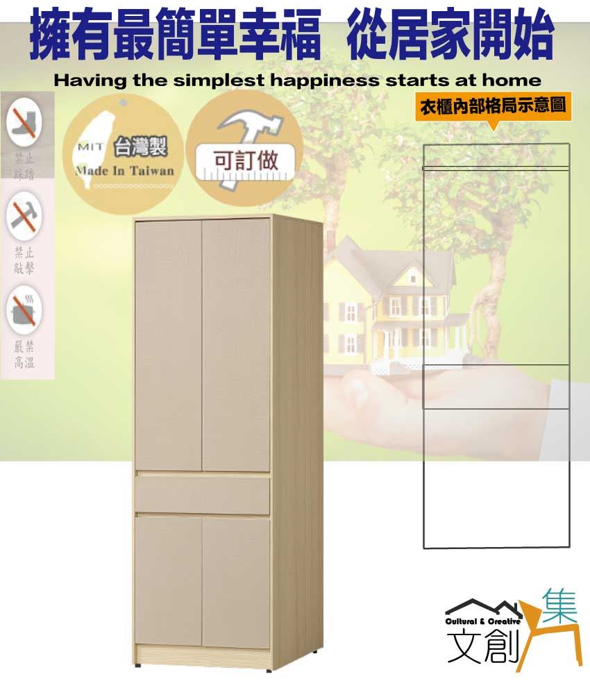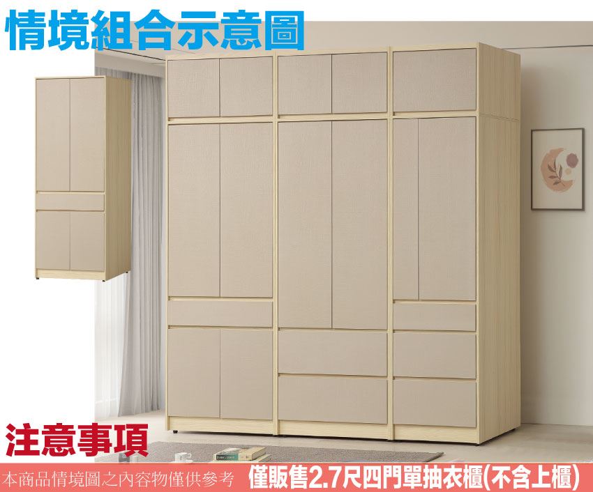 ◆產品名稱:【綠家居】愛亞2.7尺四門單抽衣櫃