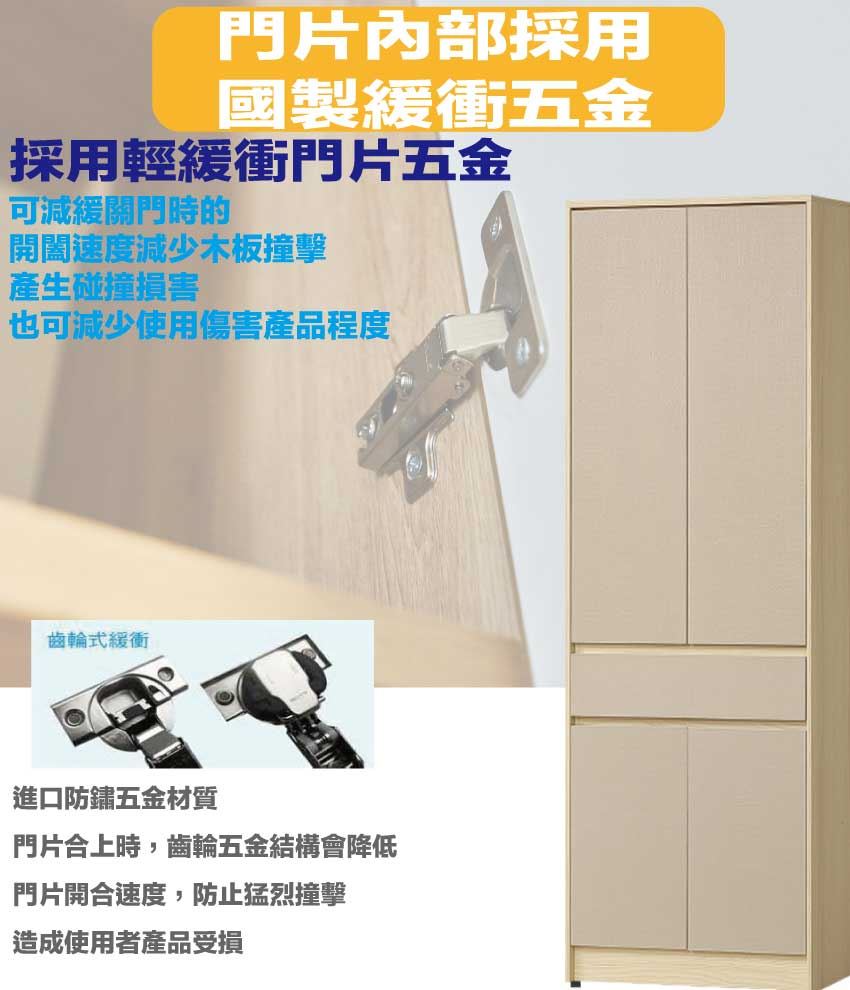 材質:防蛀木心板+防潮耐磨底座(可調高低水平)+防夾手緩衝門片五金