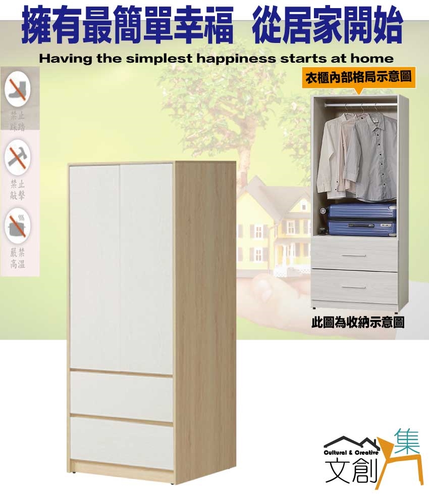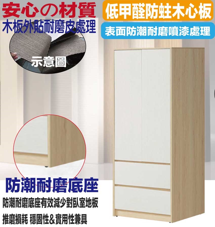◆產品名稱:【綠家居】愛楓2.7尺二門二抽衣櫃