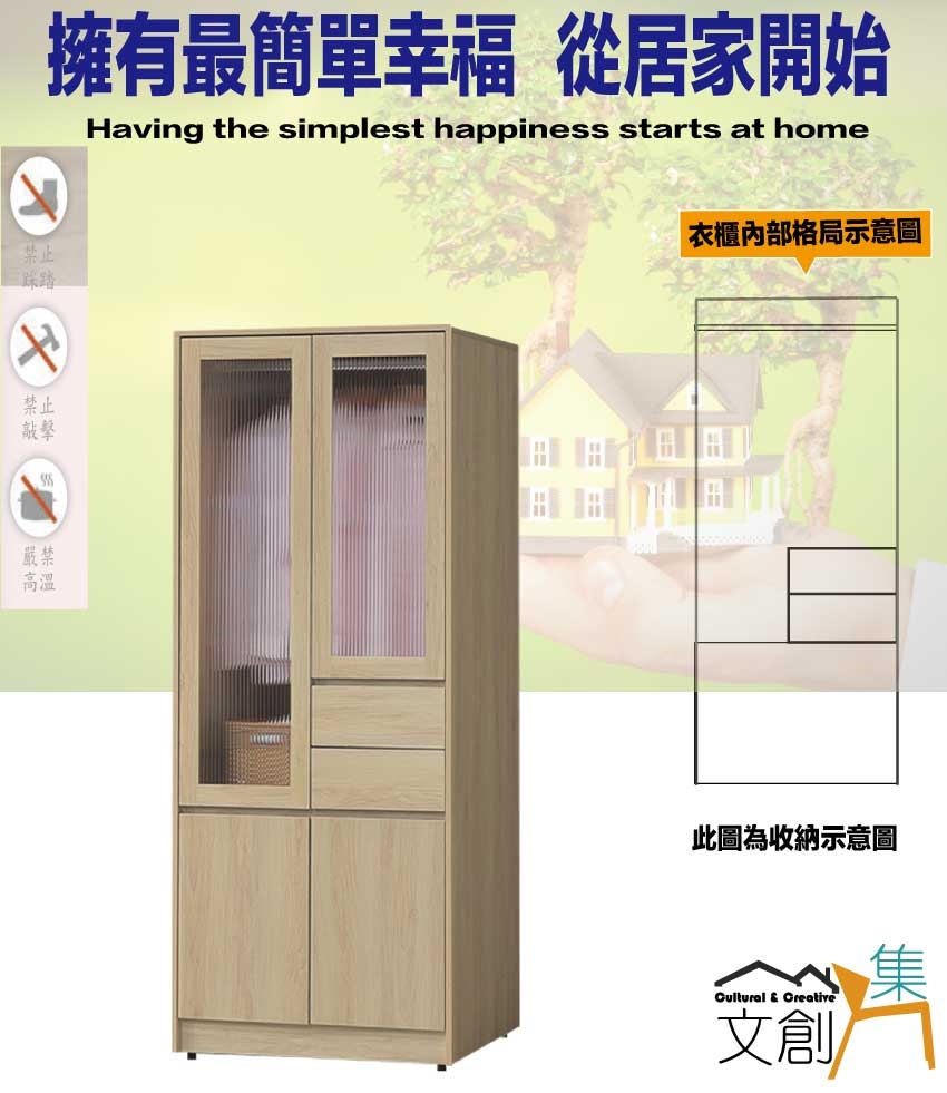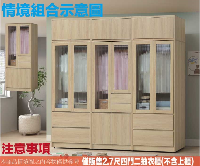 ◆產品名稱:【綠家居】愛楓原橡2.7尺四門二抽衣櫃