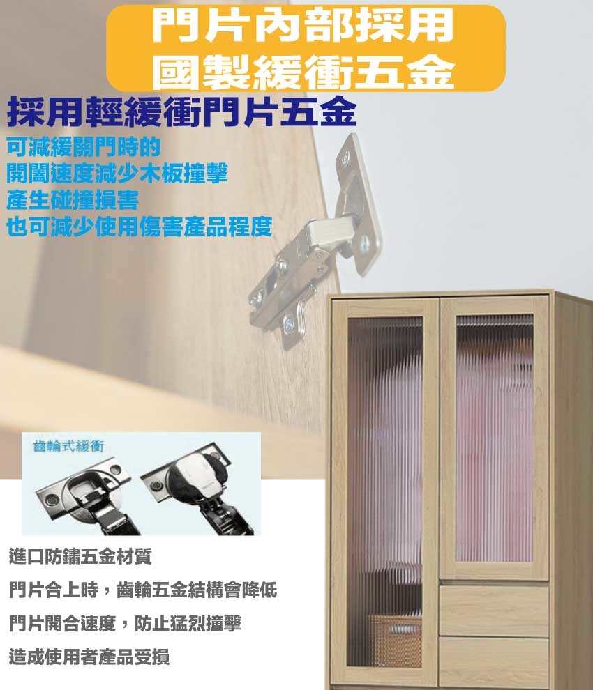 防蛀木心板+防潮耐磨底座(可調高低水平)+防夾手緩衝門片五金+PC壓克力門片等安心材質製造