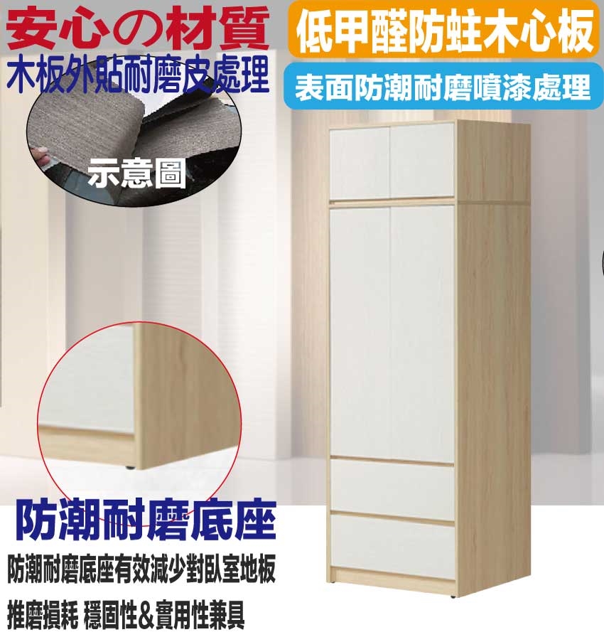 材質:防蛀木心板+防潮耐磨底座(可調高低水平)+防夾手緩衝門片五金
