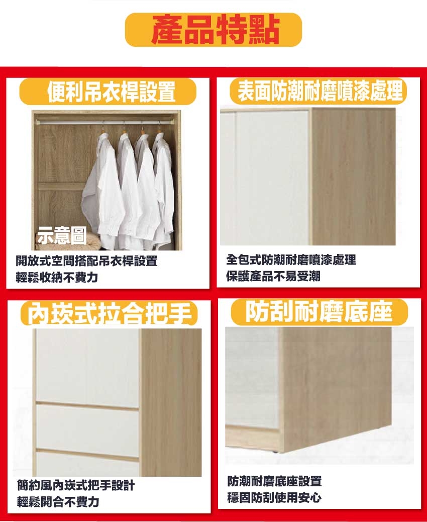 ◆產品名稱:【綠家居】愛楓2.7尺四門二抽加高衣櫃組合