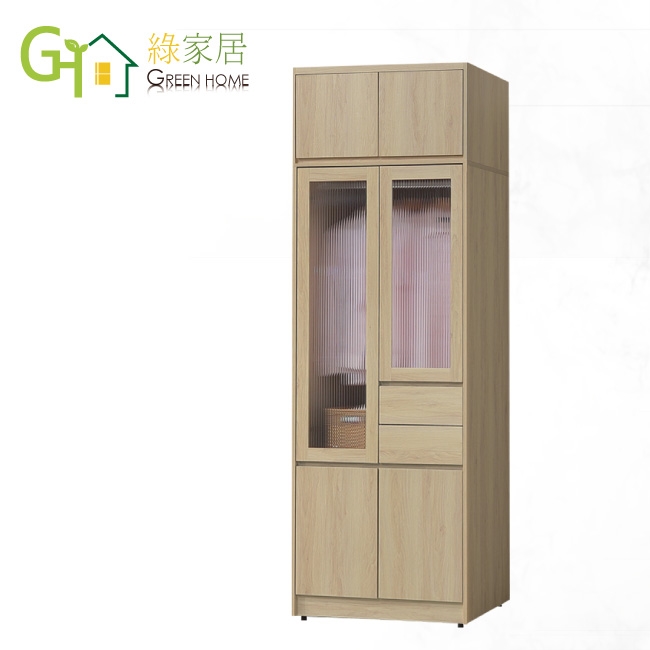 【綠家居】愛楓原橡2.7尺六門二抽加高衣櫃組合