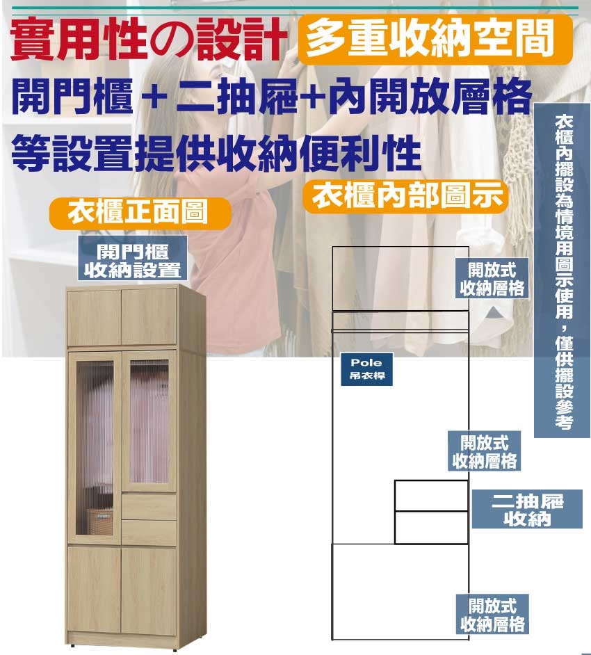 開門櫃+吊衣桿+二抽屜