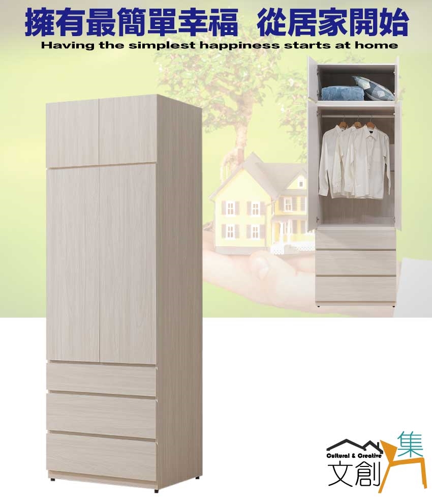 開門櫃+吊衣桿+三抽屜