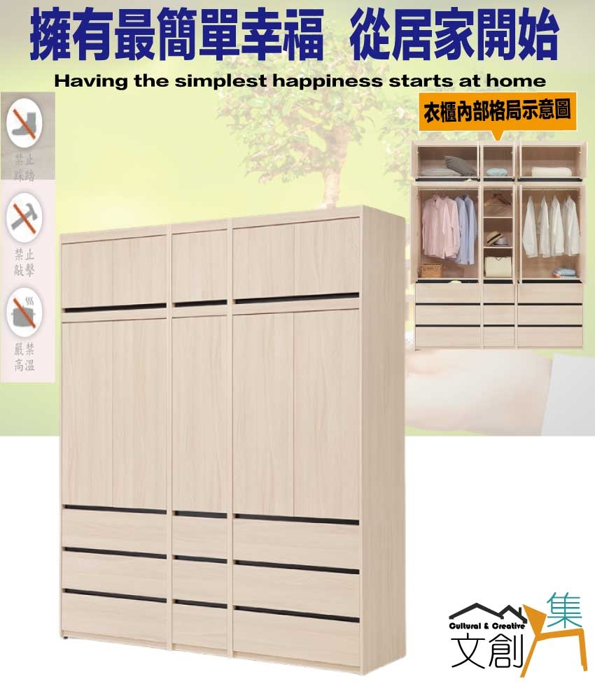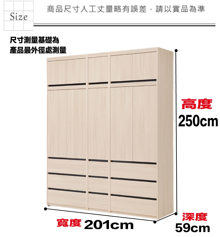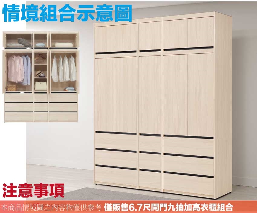◆產品名稱:【綠家居】夏亞6.7尺多門九抽加高衣櫃組合