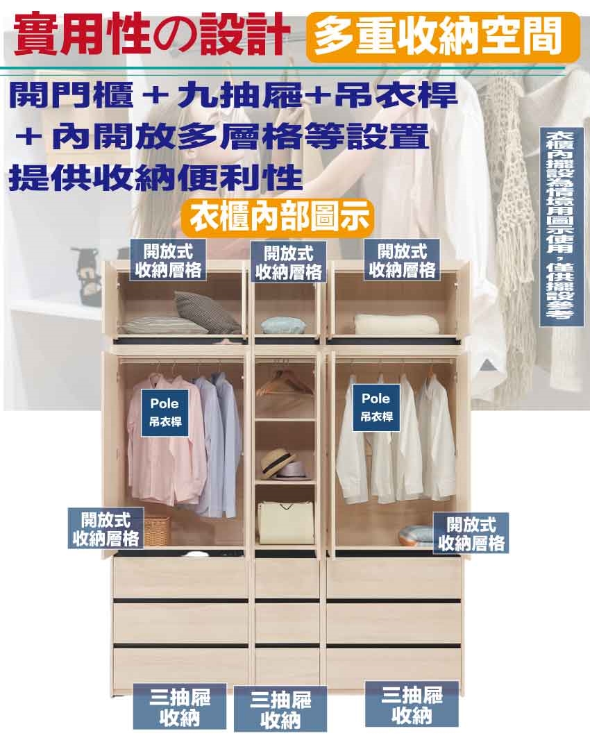 開門櫃+吊衣桿+九抽屜
