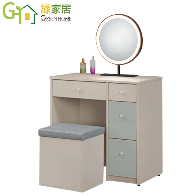【綠家居】卡黛2.7尺四抽雙色鏡台/化妝台組合(觸控鏡面座+含可收納化妝椅)
