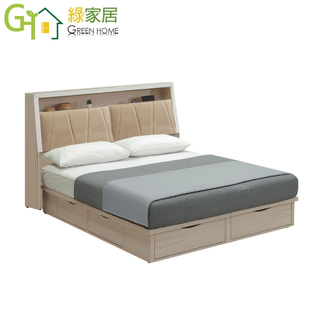 【綠家居】盧克6尺雙人加大六抽床台組合(床頭箱+六抽床底+不含床墊) 淺橡木紋色系+現代簡約風格+安心材質製造,整體採用防蛀木心板+六分木床板+防潮耐磨底座+耐磨透氣皮革+高回彈性加厚型泡棉等安心材質製造,產品外層採用防潮耐磨噴漆處理搭配採用床頭箱可掀式床枕板+內&外收納層格+內附USB插座設置+床底座三邊開合六抽屜等收納空間設計,全由專人配送到家,專業安心服務,替你省下更多時間!