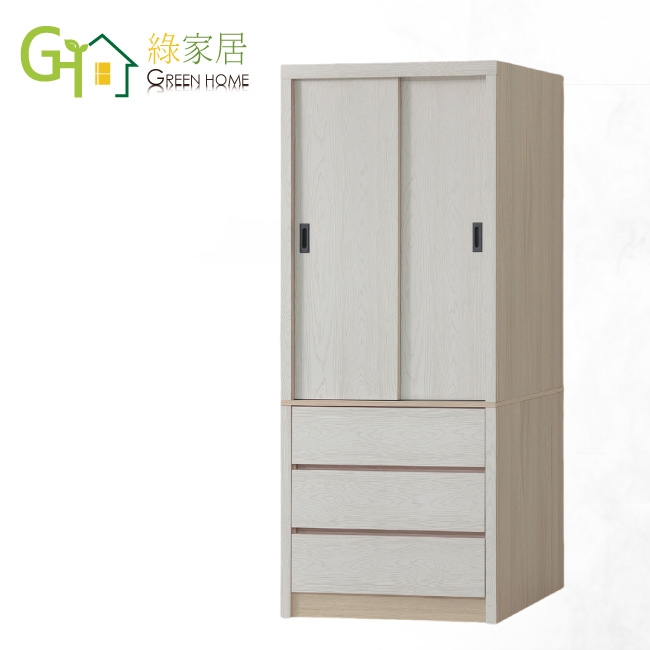 【綠家居】盧克3尺推門三抽衣櫃