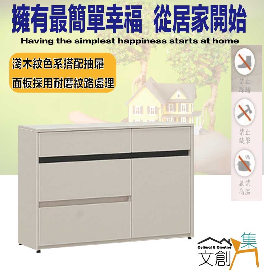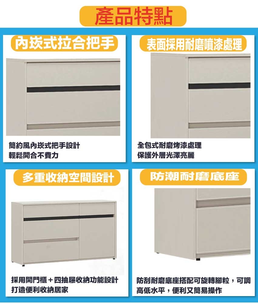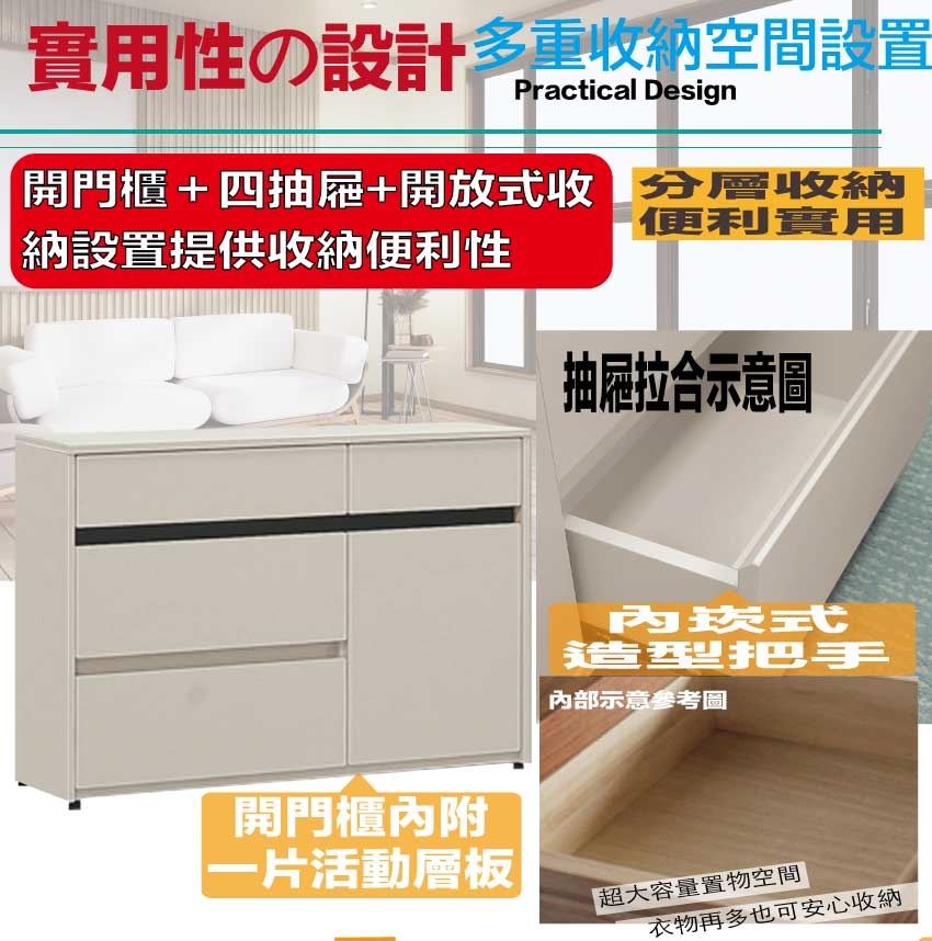 - 四抽屜+開門櫃+內開放層格