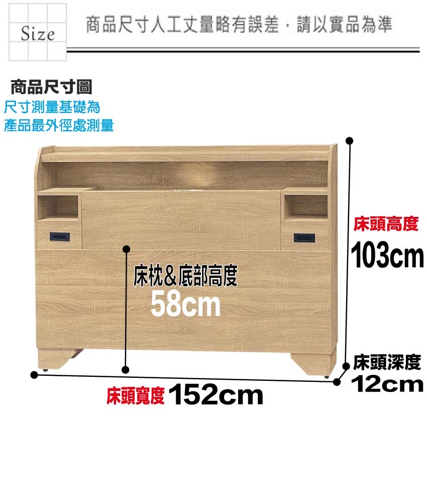 羅樂5尺雙人夜燈床頭片(三色可選) 床頭尺寸:(寬)152x(深)12x(高)103/公分 ◆材質: 材質:防蛀木心板+防潮耐磨底座(可旋轉調整腳粒) - ◎注意事項: