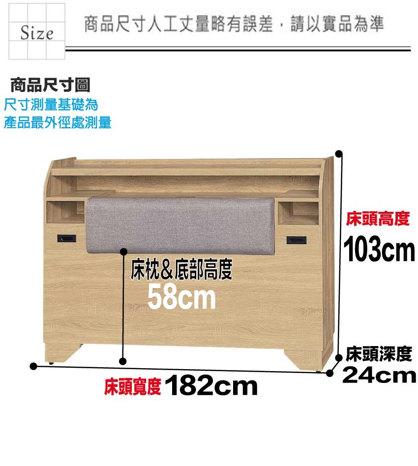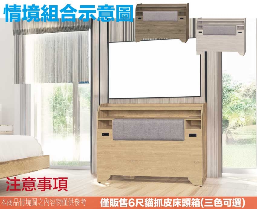 羅可6尺雙人加大貓抓皮插座床頭箱(三色可選) 床頭尺寸:(寬)182x(深)24x(高)103/公分 ◆材質: 材質:防蛀木心板+防潮耐磨底座(可旋轉調整腳粒)+耐磨貓抓皮革+高回彈泡棉 - ◎注意事項: