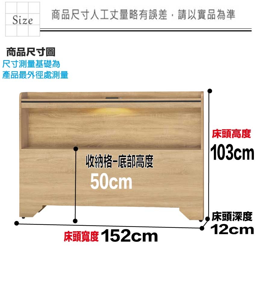 床頭尺寸:(寬)152x(深)12x(高)103/公分
