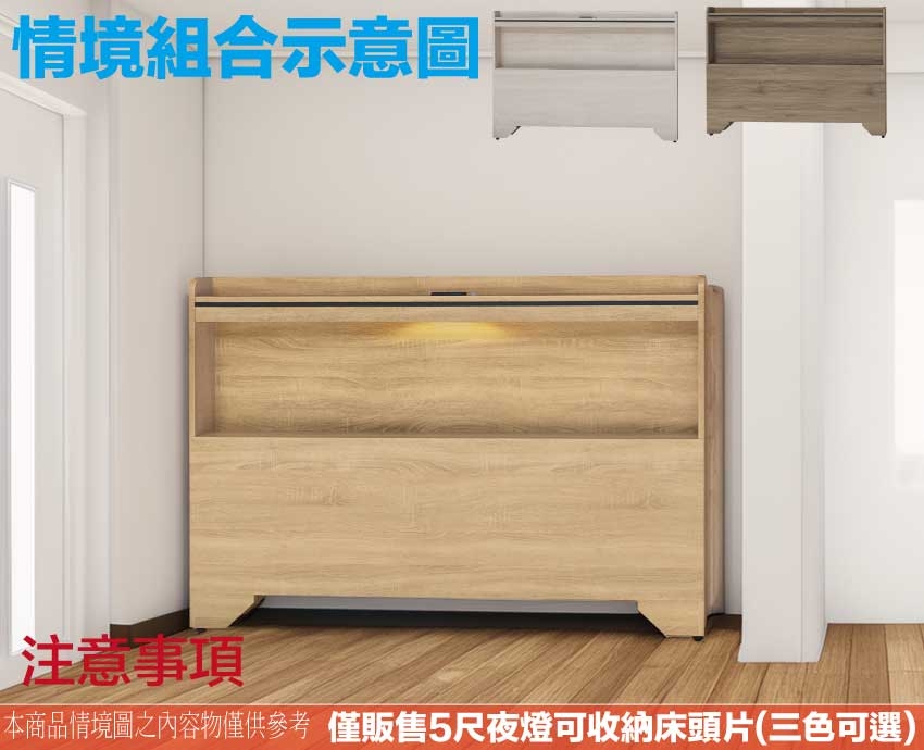 產品名稱:【綠家居】朵雅5尺雙人夜燈插座床頭片(三色可選)