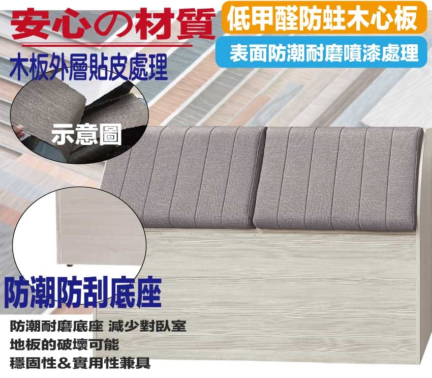 • 防蛀木心板+防潮耐磨底座