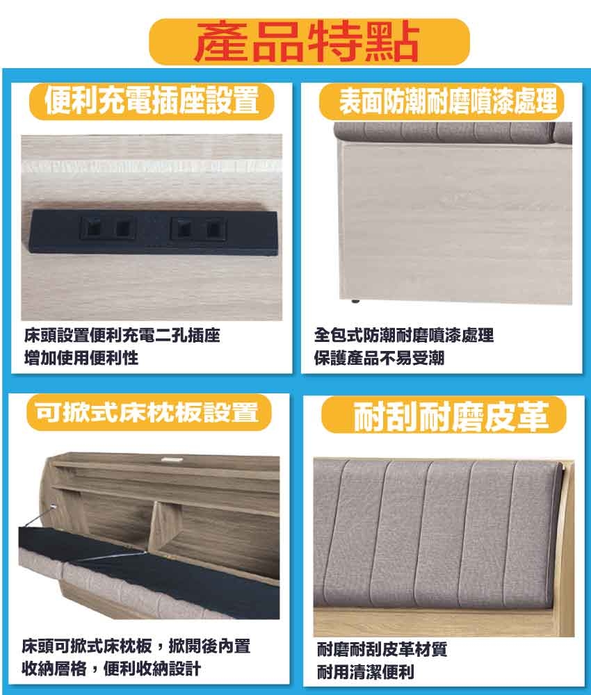 產品名稱:【綠家居】米家6尺雙人加大貓抓皮插座加高型床頭箱(六色可選)