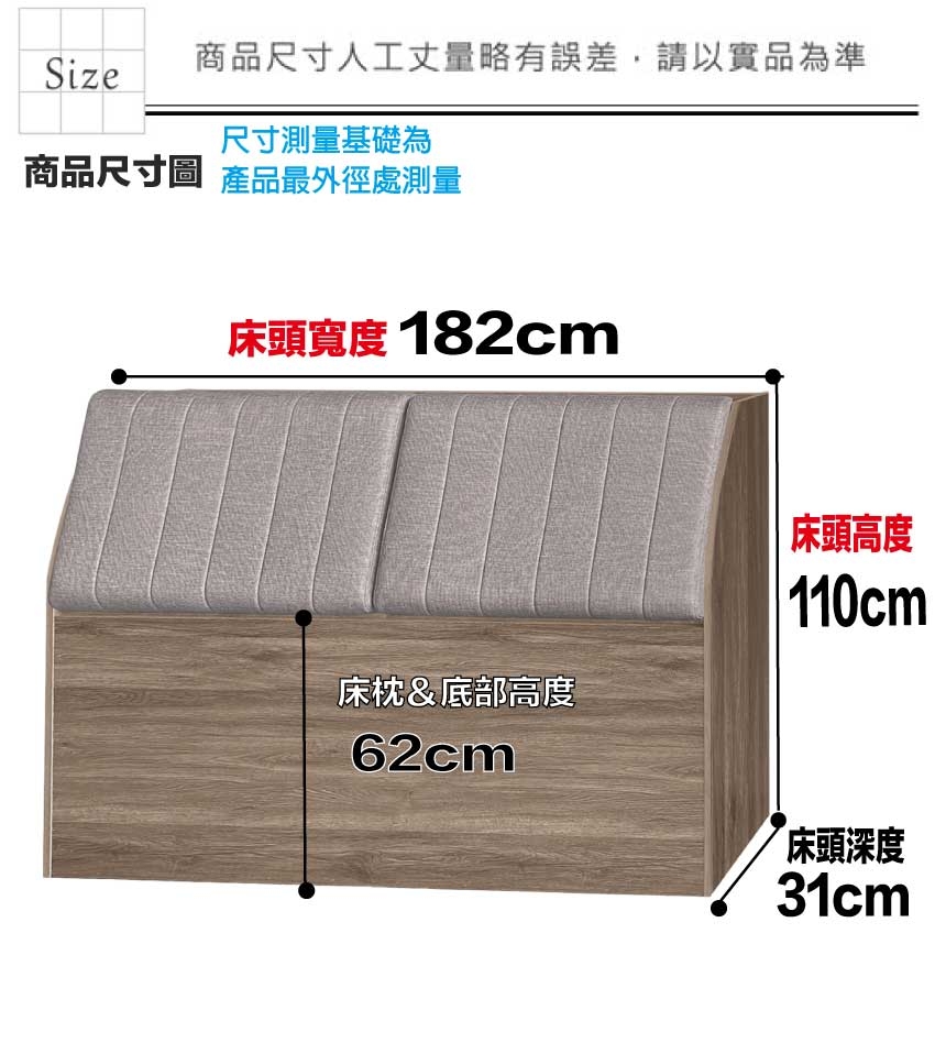 床頭尺寸:(寬)182x(深)31x(高)110/公分