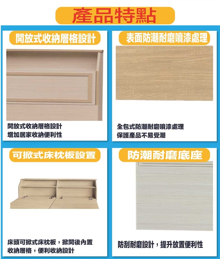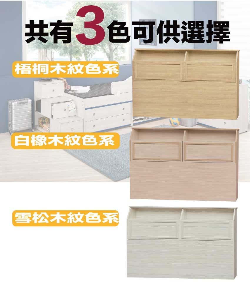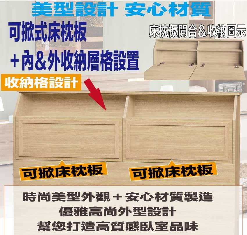 • 可掀式床枕板+內&外收納層格