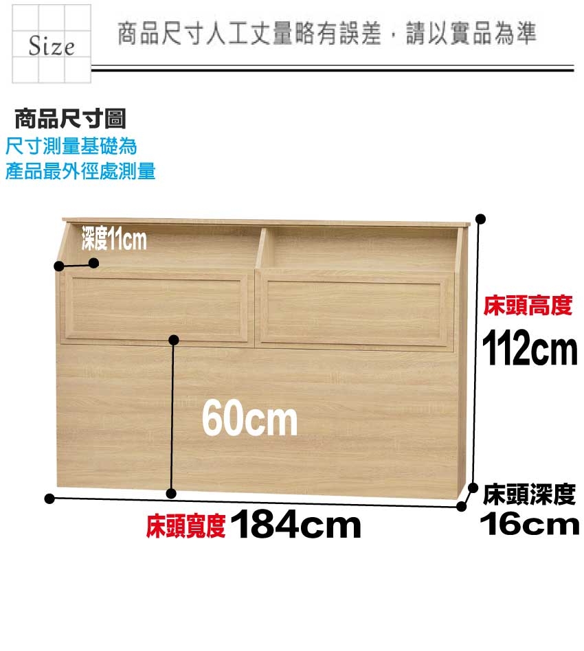 床頭尺寸:(寬)184x(深)16x(高)112/公分