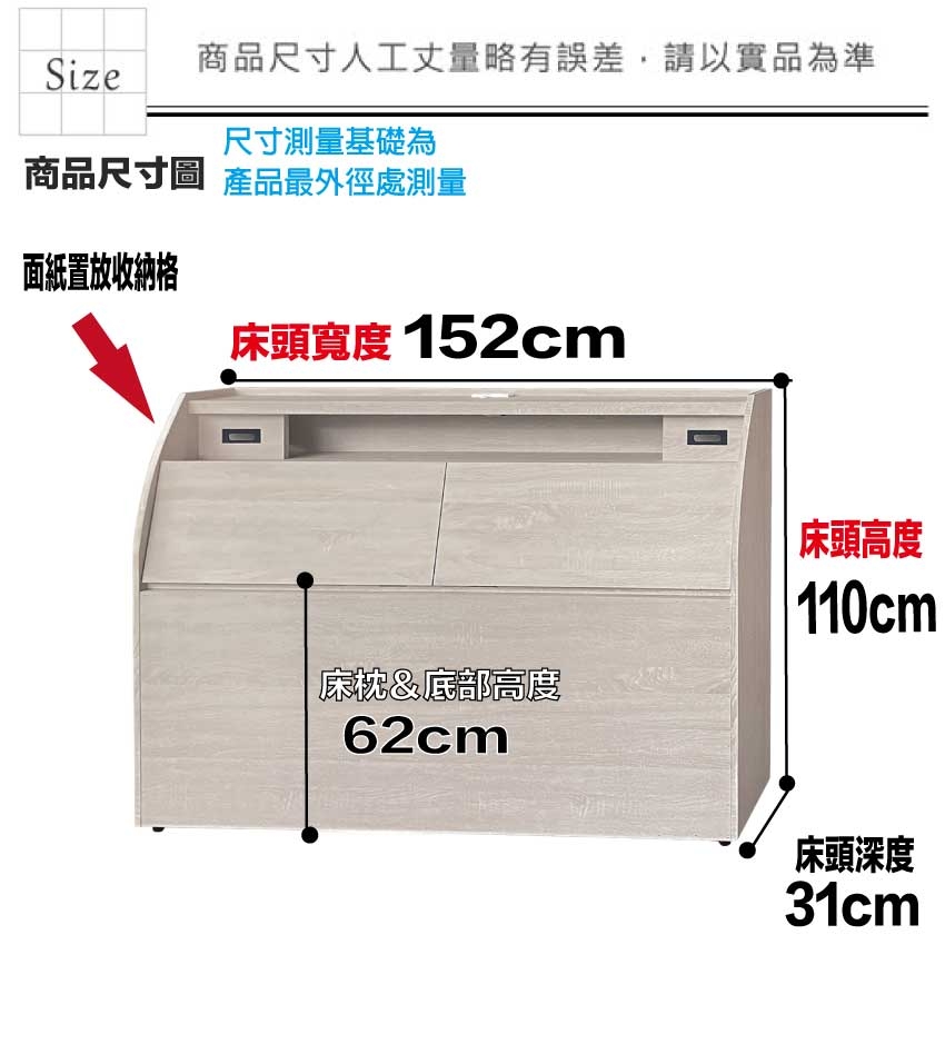 床頭尺寸:(寬)152x(深)31x(高)110/公分