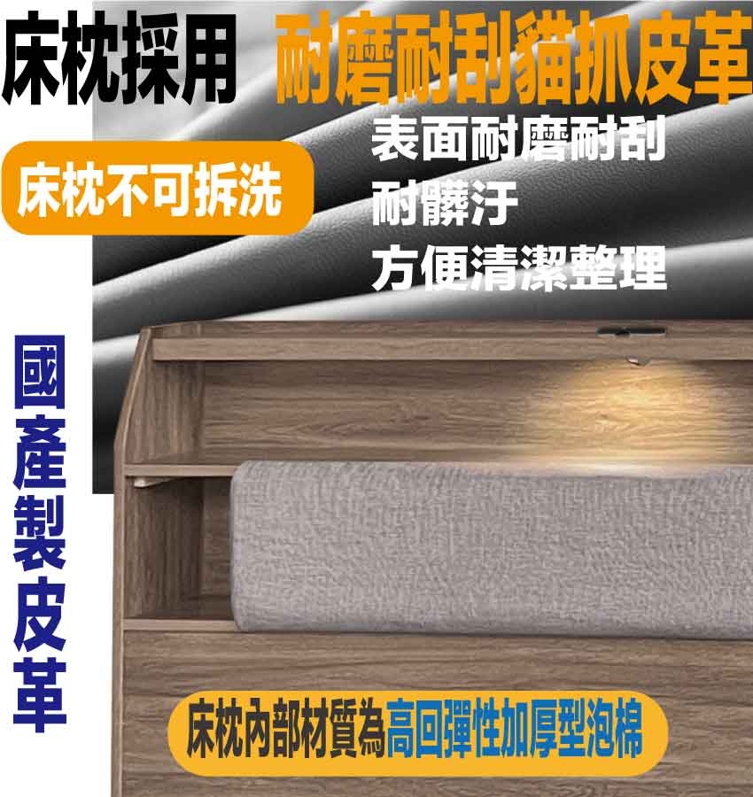 【綠家居】滿意3.5尺單人貓抓皮夜燈加高型床頭箱(六色可選) 六色可選+現代簡約風格+安心材質製造,整體採用防蛀木心板+防潮耐磨底座+耐磨貓抓皮革+高回彈泡棉等安心材質製造,產品外層採用防潮耐磨噴漆處理搭配採用床頭可掀式床枕板+內&外收納層格+LED夜燈&便利插座設置等收納空間設計,全由專人配送到家,專業安心服務,替你省下更多時間!