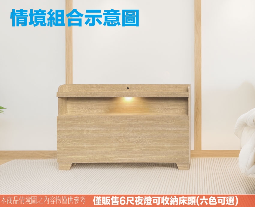 產品名稱:【綠家居】滿意6尺雙人加大夜燈可收納插座床頭片(六色可選)