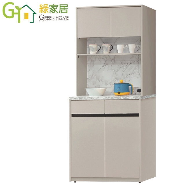 【綠家居】羅特2.8尺四門二抽仿石紋高餐櫃組合