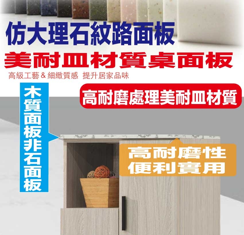 防蛀木心板+烤漆五金腳座+防夾手緩衝門片五金+面板採用耐磨仿石紋美耐皿材質等安心材質製造