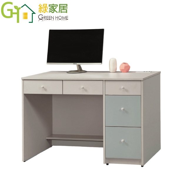 【綠家居】卡黛4尺五抽雙色書桌(桌面設置便利插座)
