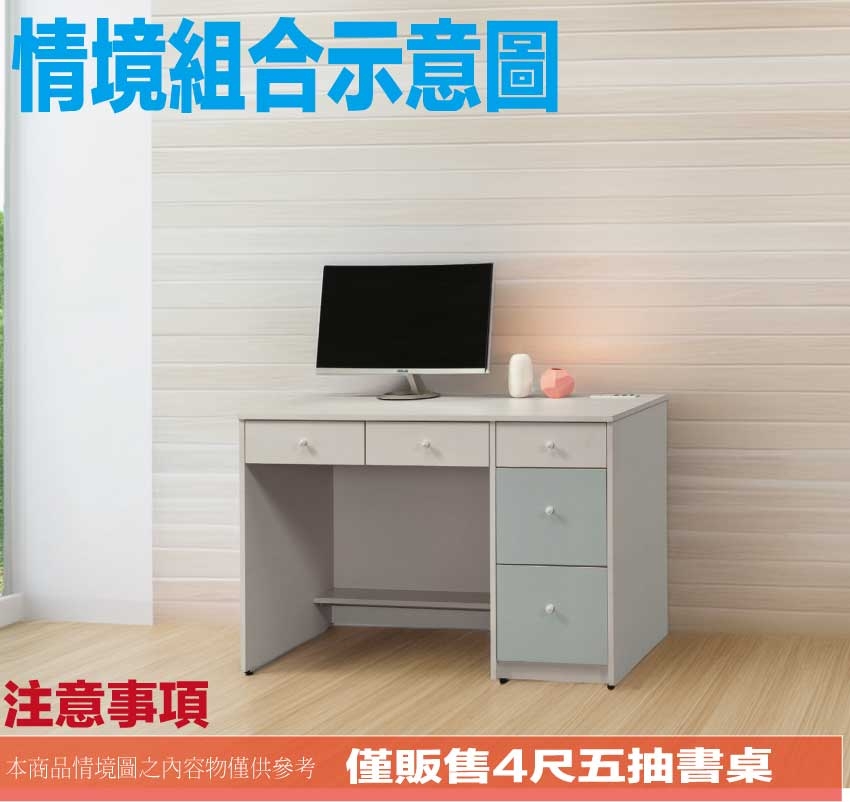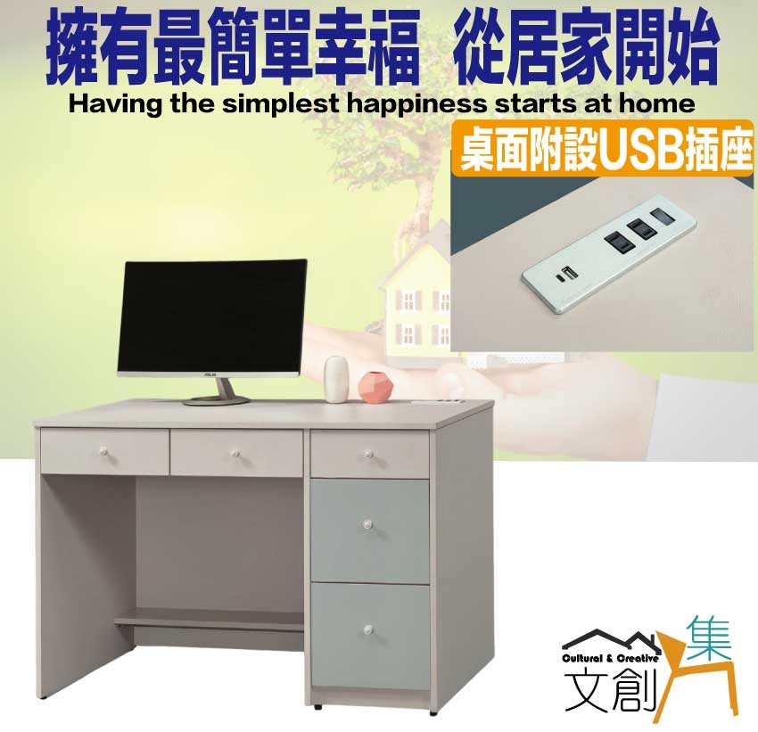 產品名稱:【綠家居】卡黛4尺五抽雙色書桌(桌面設置便利插座)
