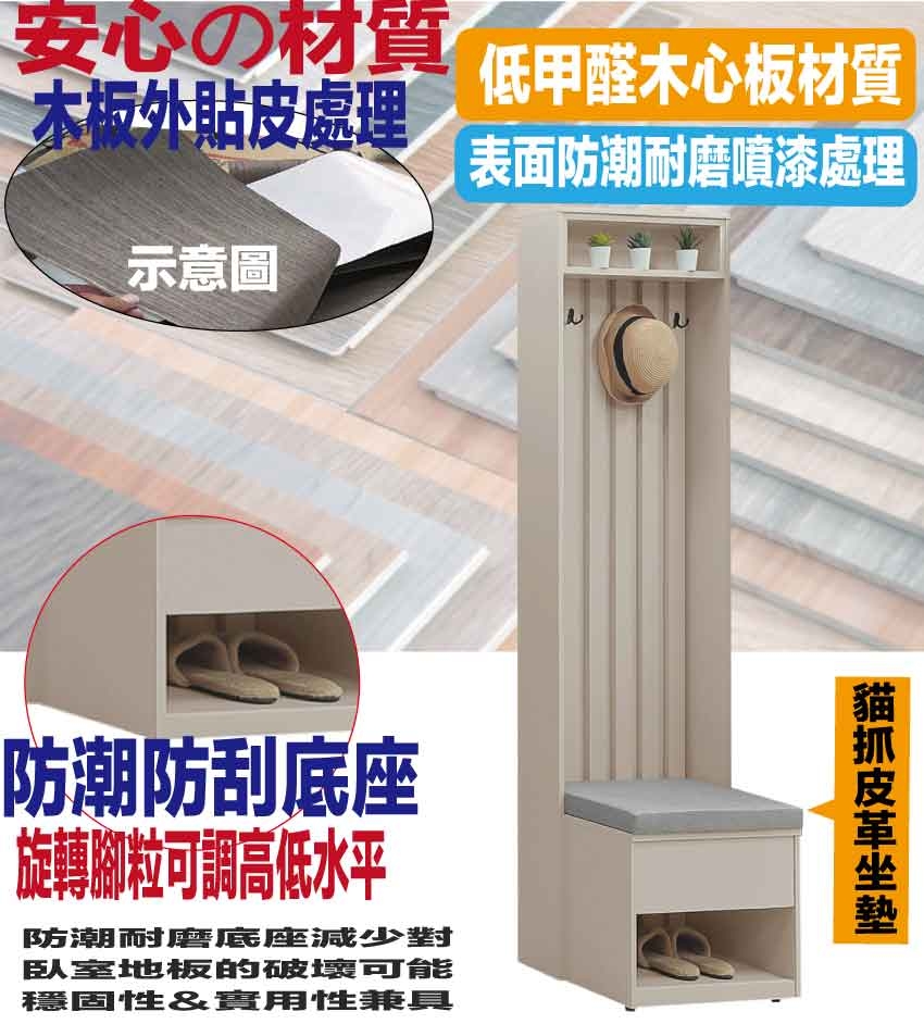【綠家居】羅特2尺高屏風座鞋玄關鞋櫃     淺奶茶木紋色系+現代簡約風格+安心材質製造,整體採用防蛀木心板+防潮耐磨底座+貓抓皮革坐墊+內置高彈力泡棉崁入式美背等安心材質製造,產品外層採用防潮耐磨噴漆處理搭配內置收納置物掛勾+穿鞋坐墊+開放層格等收納空間設計,全由專人配送到家,專業安心服務,替你省下更多時間!