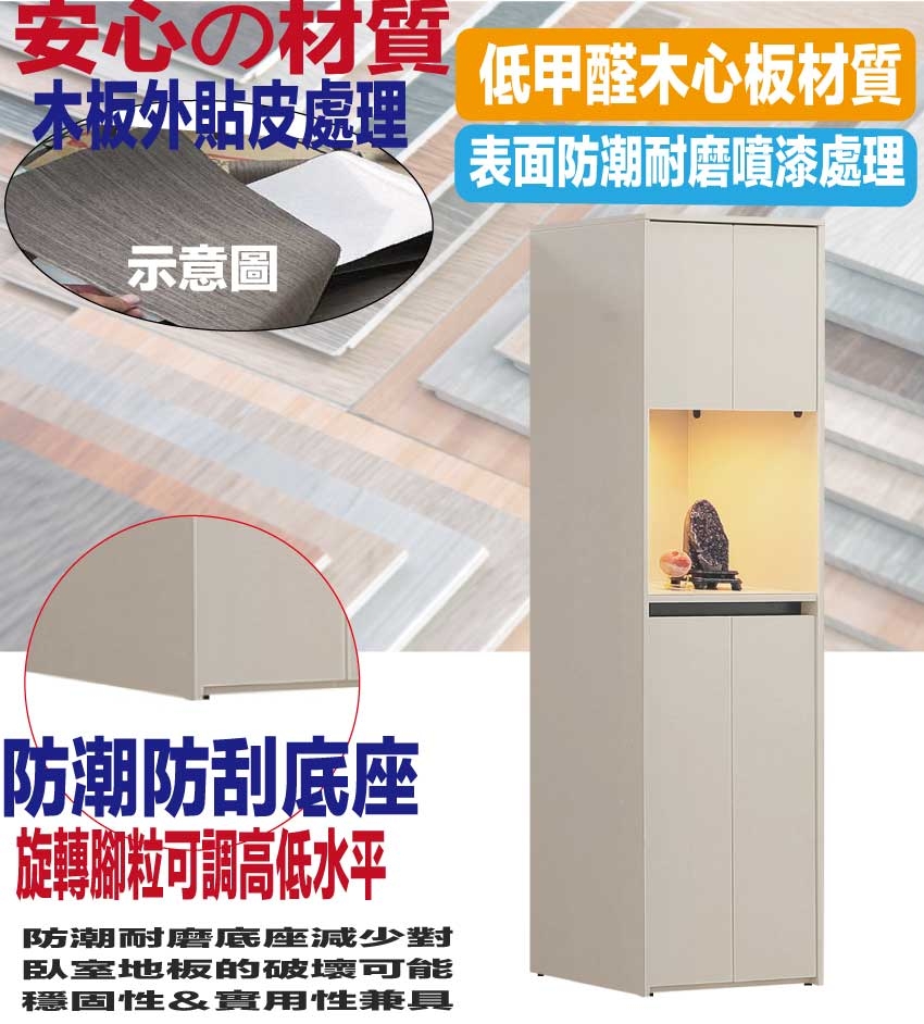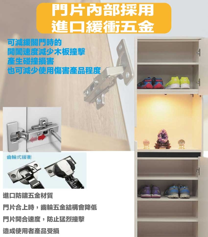 材質:防蛀木心板+防潮耐磨底座(可旋轉調整腳粒)+防夾手緩衝門片五金+崁入式美背處理