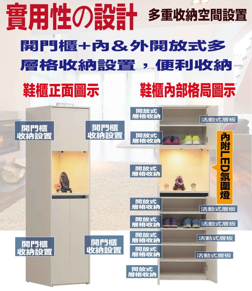 產品名稱:【綠家居】特2尺四門高玄關櫃/置物櫃(內置LED氛圍燈)