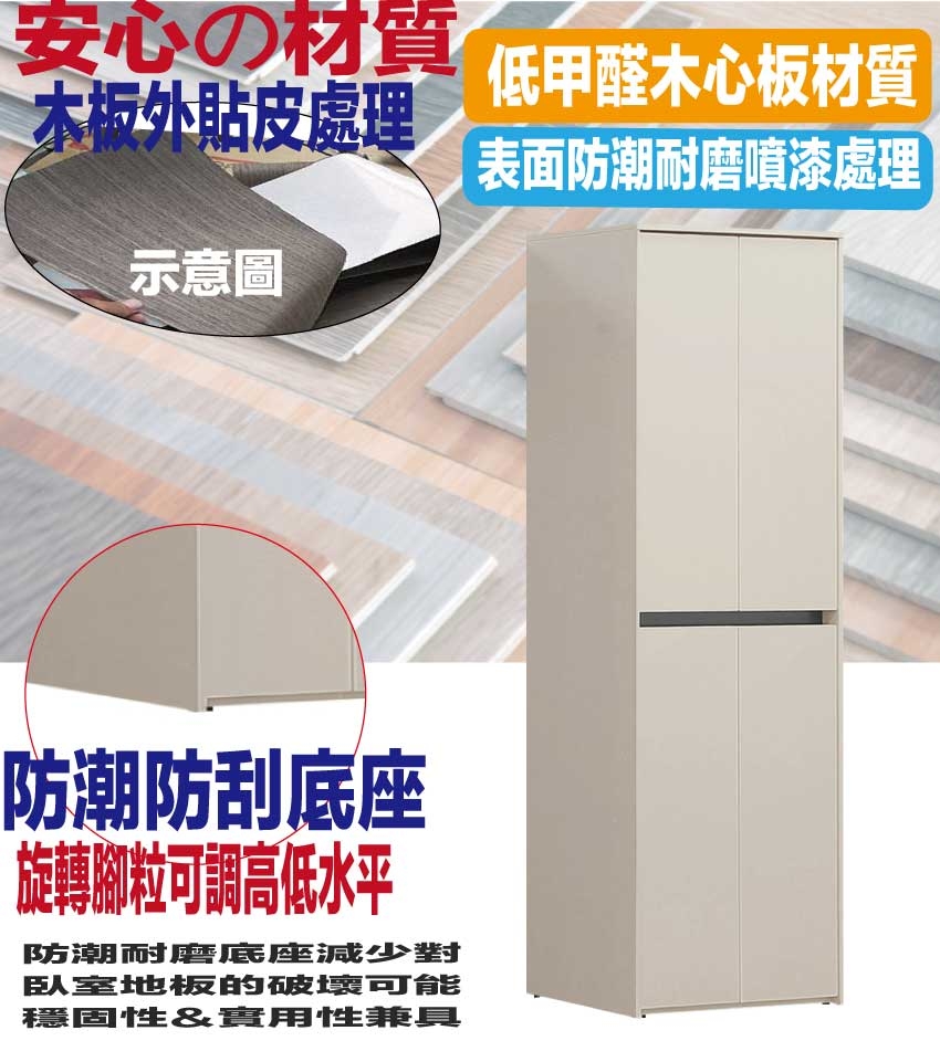 採用防蛀木心板+防潮耐磨底座+防夾手緩衝門片五金+崁入式美背處理等安心材質製造