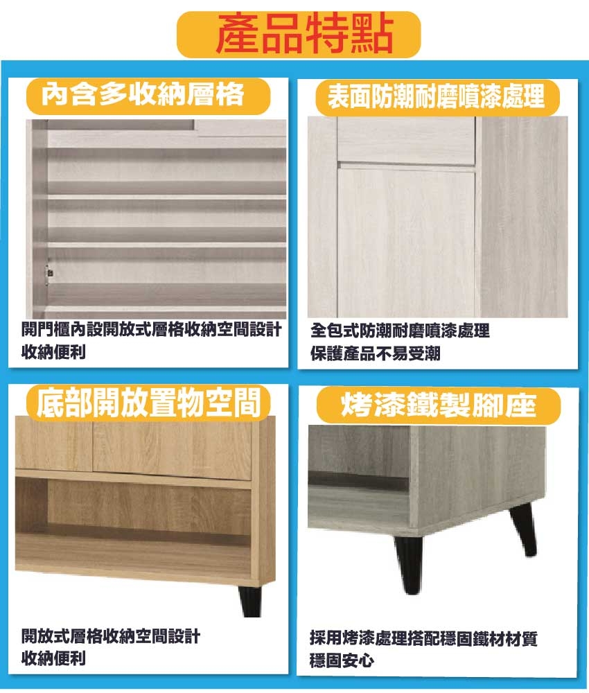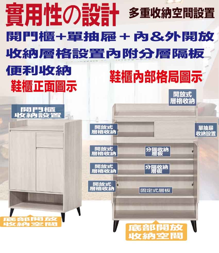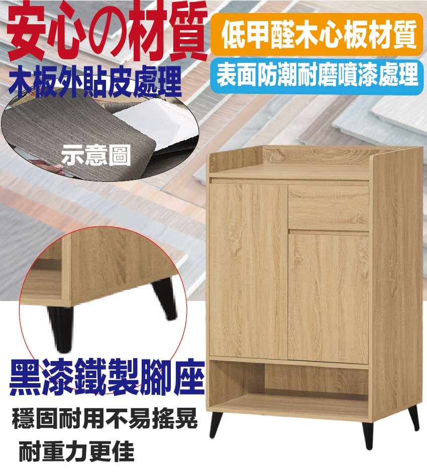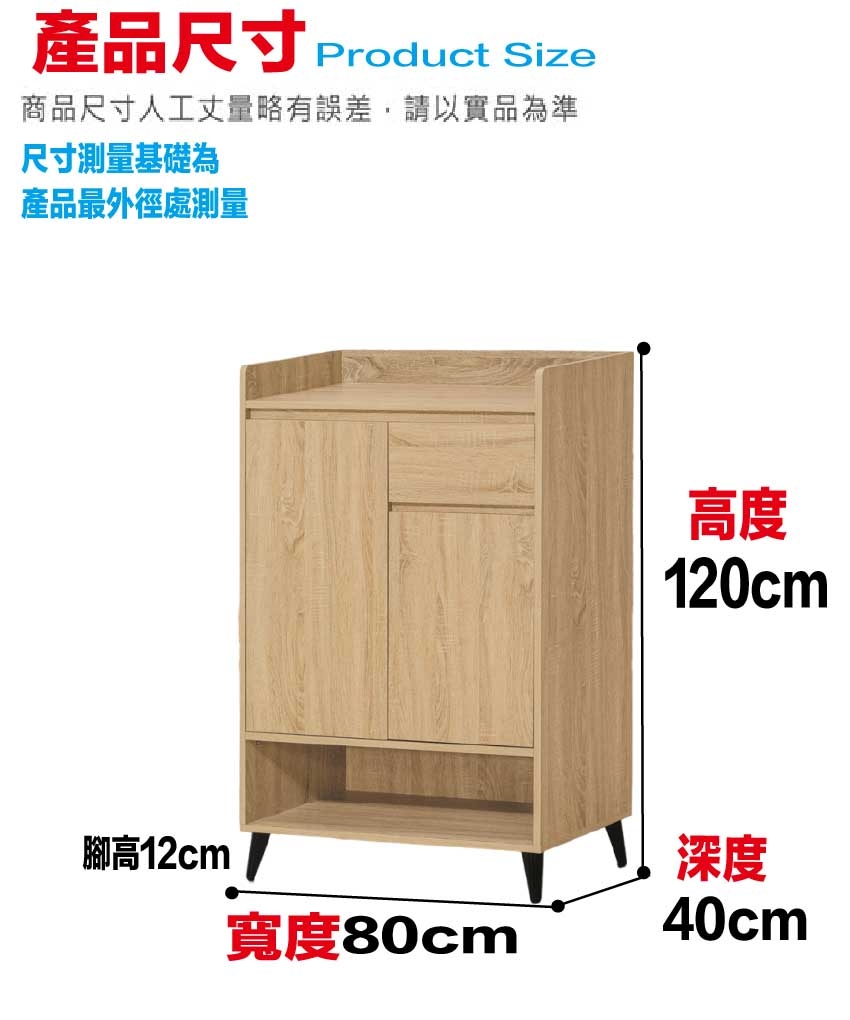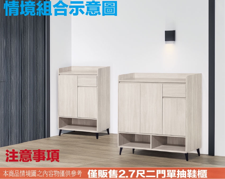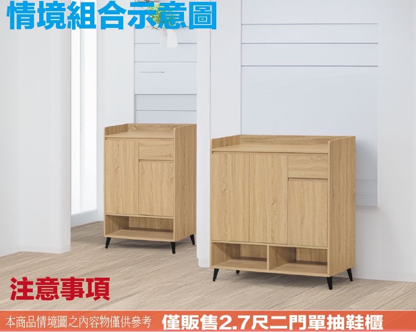 愛坦2.7尺二門單抽低鞋櫃(三色可選) 尺寸:(寬)80x(深)40x(高)120/公分 ◆材質: 材質:防蛀木心板+烤漆五金腳座 - ◎注意事項: