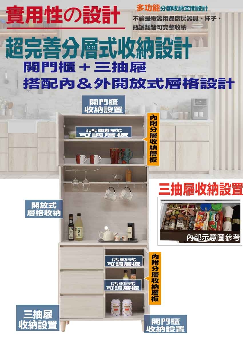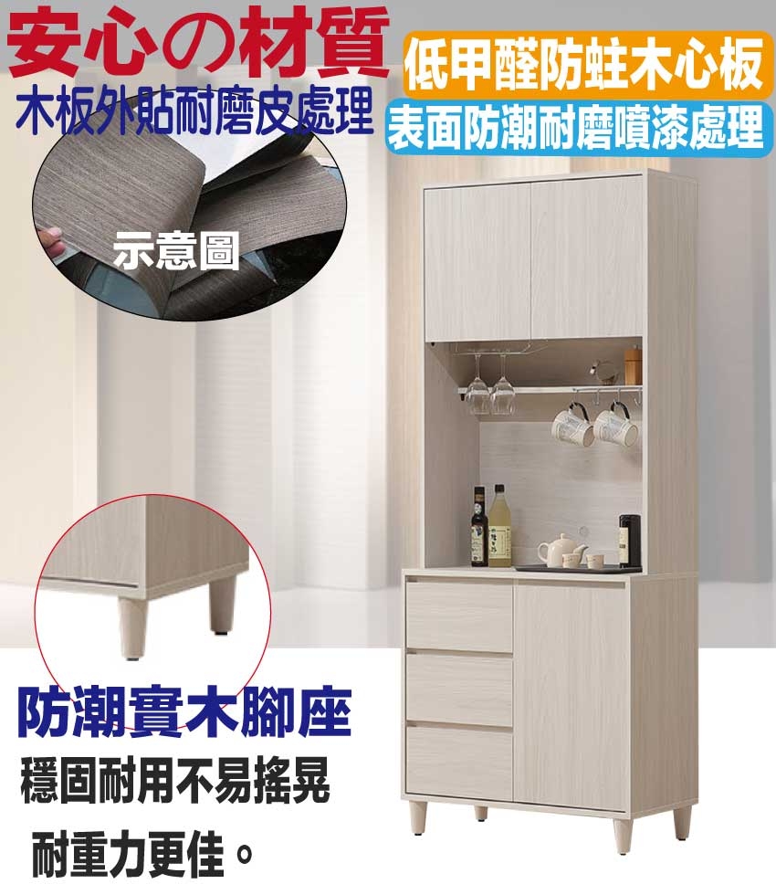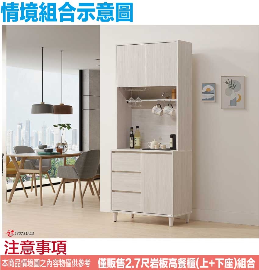 【綠家居】杜摩2.7尺岩板高餐櫃組合 淺橡木紋色系+現代簡約風格+安心材質製造,使用放心+搭配居家更便利,整體採用防蛀木心板+防潮木質腳座(底部為防刮腳粒)+10mm高硬度岩板桌面板+防夾手緩衝五金等安心材質製造搭配外層採用防潮耐磨噴漆處理 ,採用開門櫃+三抽屜+內&外開放層格等收納空間設計,全由專人配送到家,專業安心服務,替你省下更多時間!