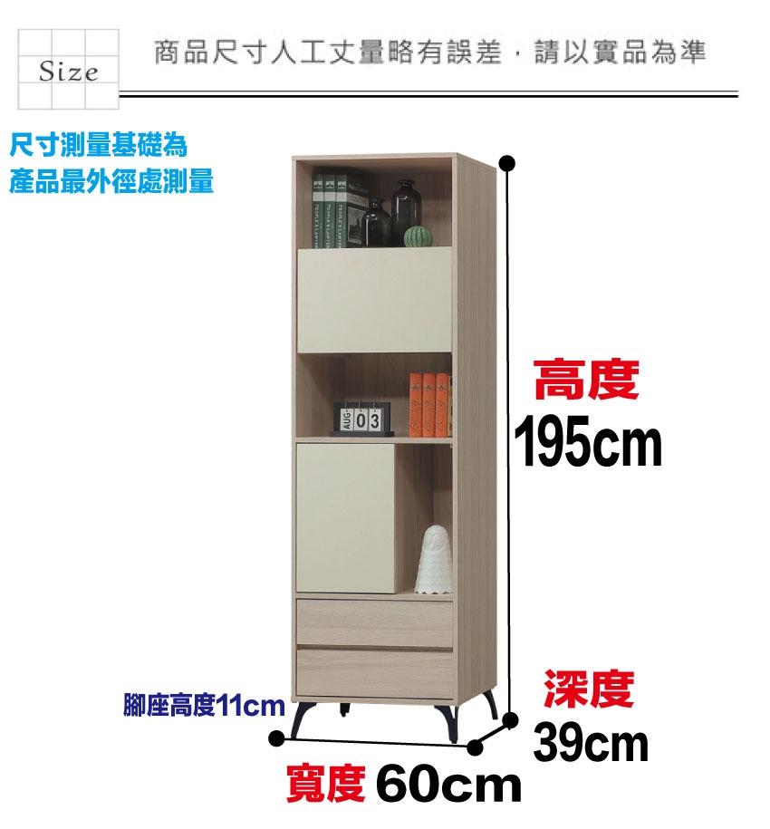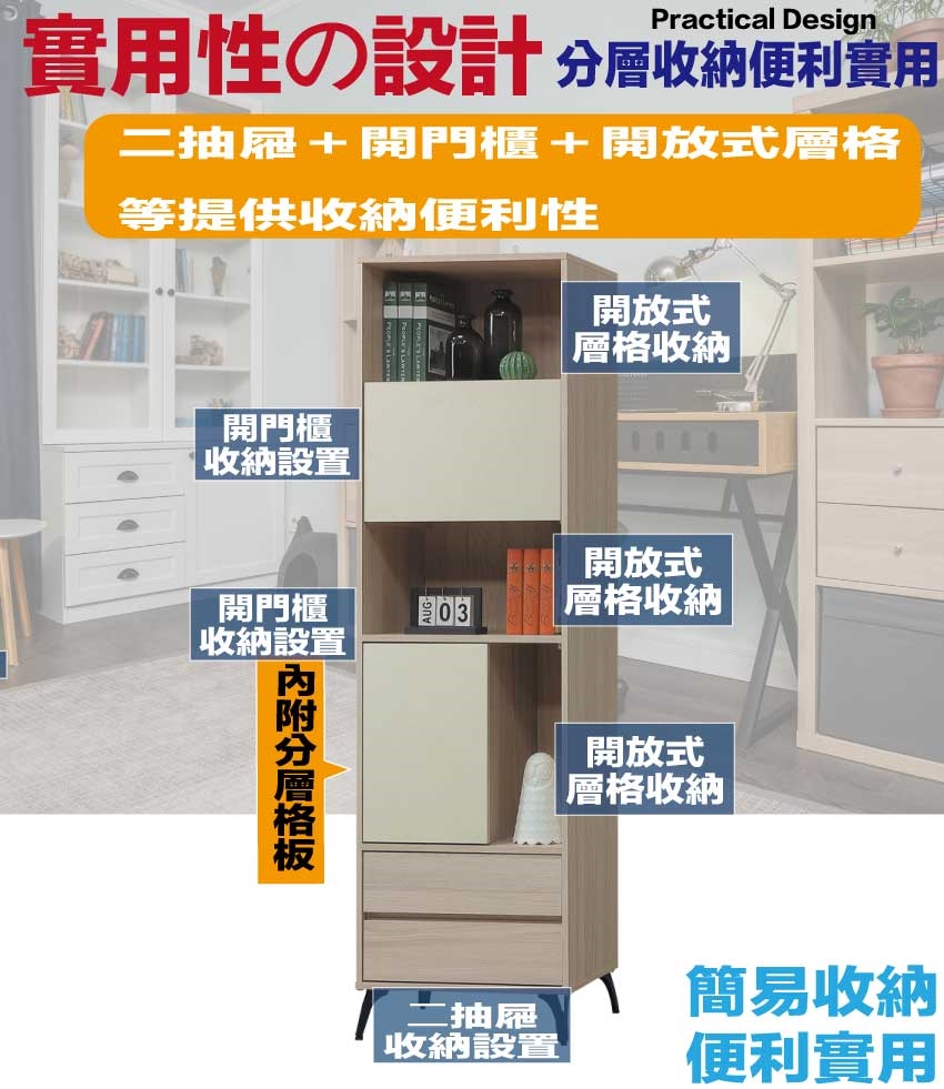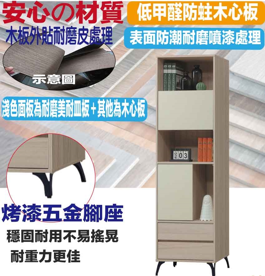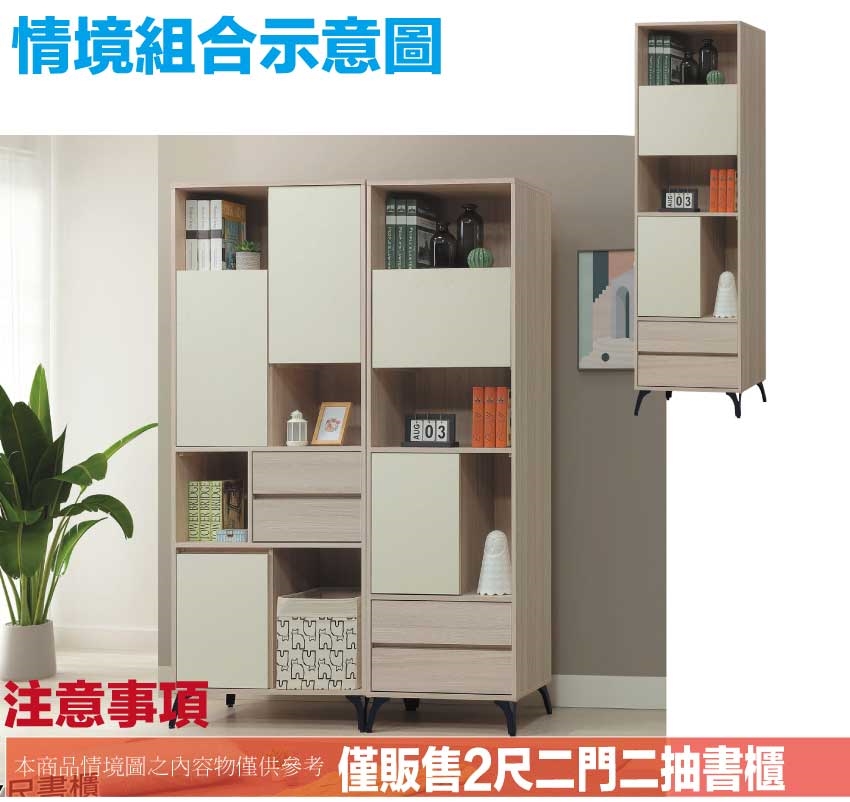 - ◆產品名稱:【綠家居】蕾克2尺二門二抽高書櫃