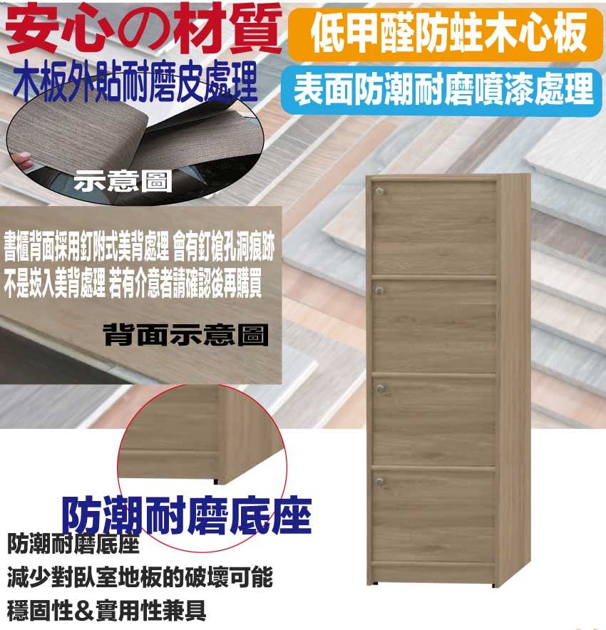 【綠家居】康永1.5尺四門書櫃(四色可選) 四色可選+安心材質製造,使用放心+搭配居家更便利,採用防蛀木心板+防潮耐磨底座等安心材質製造 ,外層採用防潮耐磨噴漆處理搭配採用開門櫃+內開放層格等收納空間設計,全由專人配送到家,專業安心服務,替你省下更多時間!