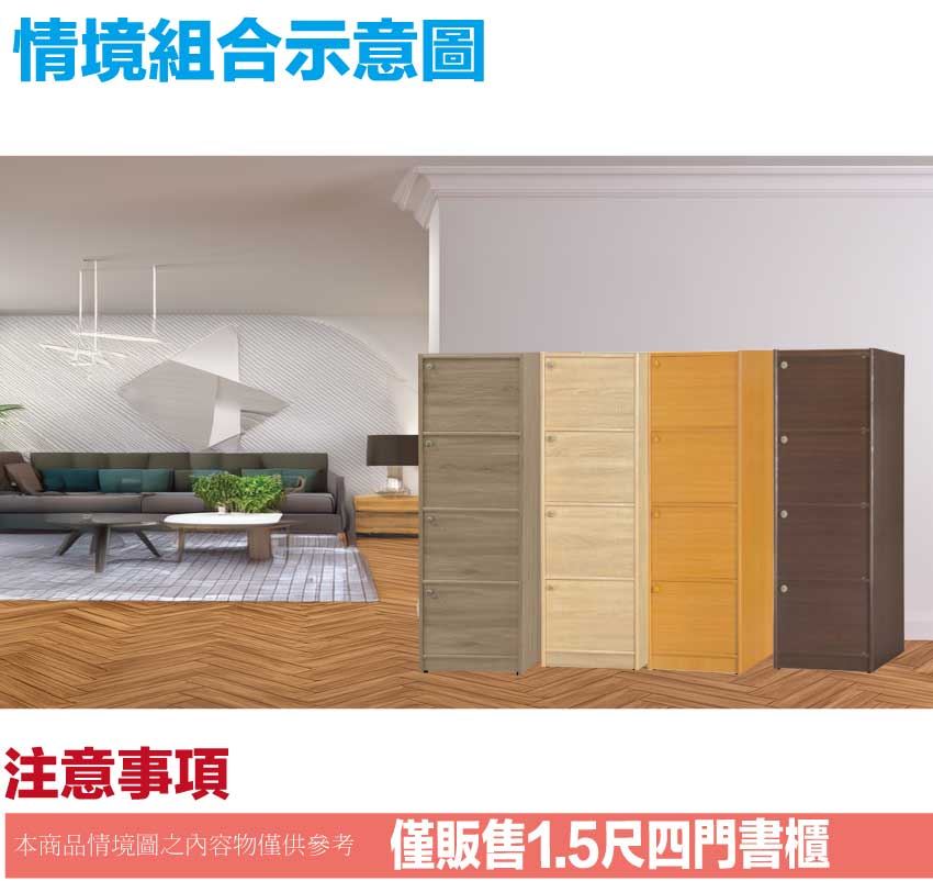 【綠家居】康永1.5尺四門書櫃(四色可選)