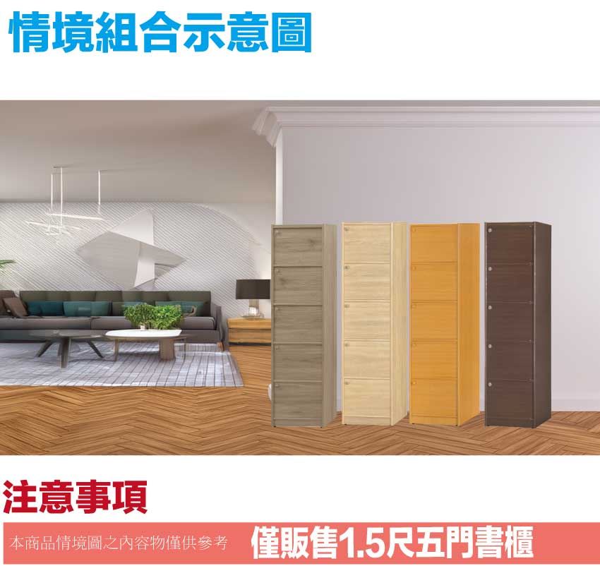 【綠家居】康永1.5尺五門書櫃(四色可選)