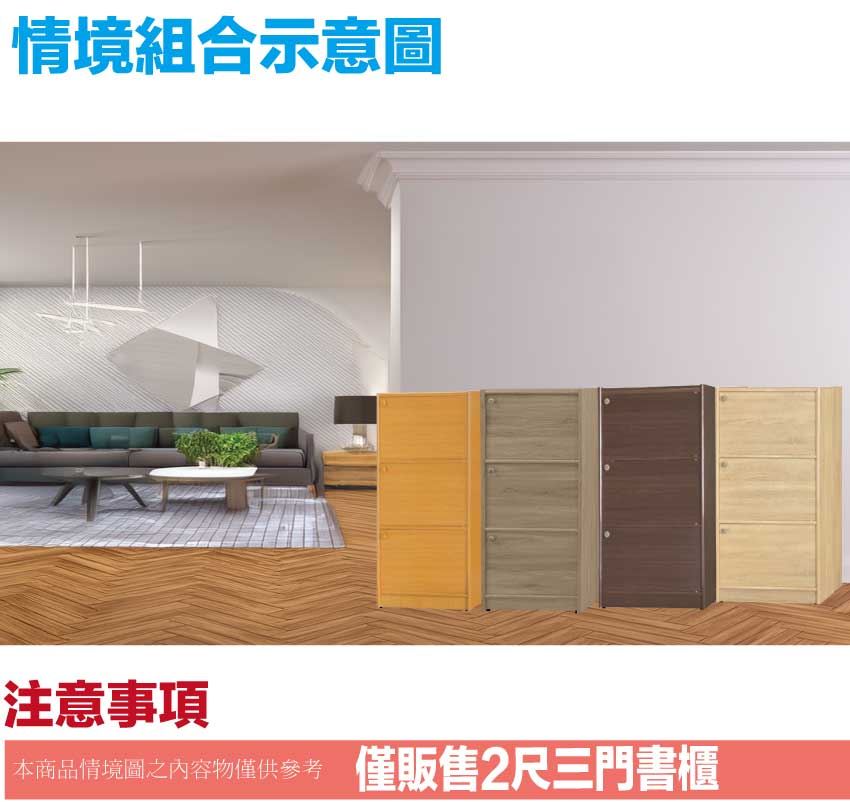 ◆產品名稱:【綠家居】康永2尺三門書櫃(四色可選)
